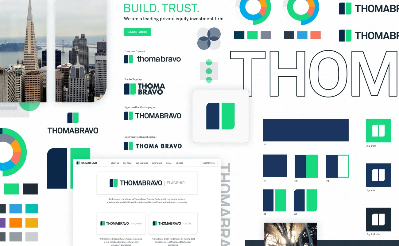 We replaced the existing logo to create an identity honoring Thoma Bravo's history while projecting future vision. Our story emphasized partnership, speaking to the next generation of private equity.