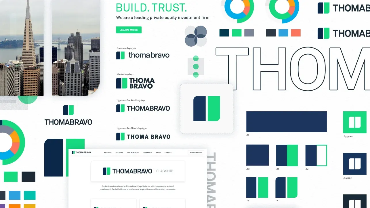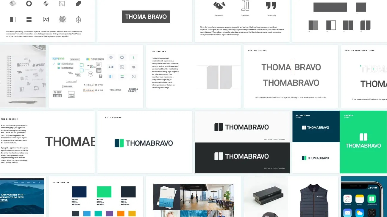 We replaced the existing logo to create an identity honoring Thoma Bravo's history while projecting future vision. Our story emphasized partnership, speaking to the next generation of private equity.